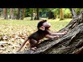 foundry A very cute baby monkey Ready go up the tree_baby follow mummy on tree | |